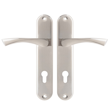 Ручки на планке предназначены для совместной установки с врезными замками под евроцилиндр и межосевым расстоянием 85 мм. Ручки универсальные: подходят для правых и левых дверей.