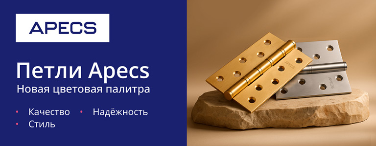 Бренд APECS расширяет ассортимент петель популярными цветами: сатинированное матовое золото, сатинированный хром и суперматовый никель.