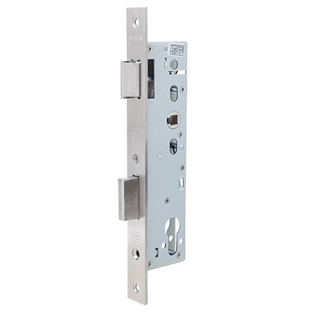 Замок Apecs 7400-35-INOX предназначен для установки в узкопрофильные двери из стального или алюминиевого профиля, в том числе и противопожарные.